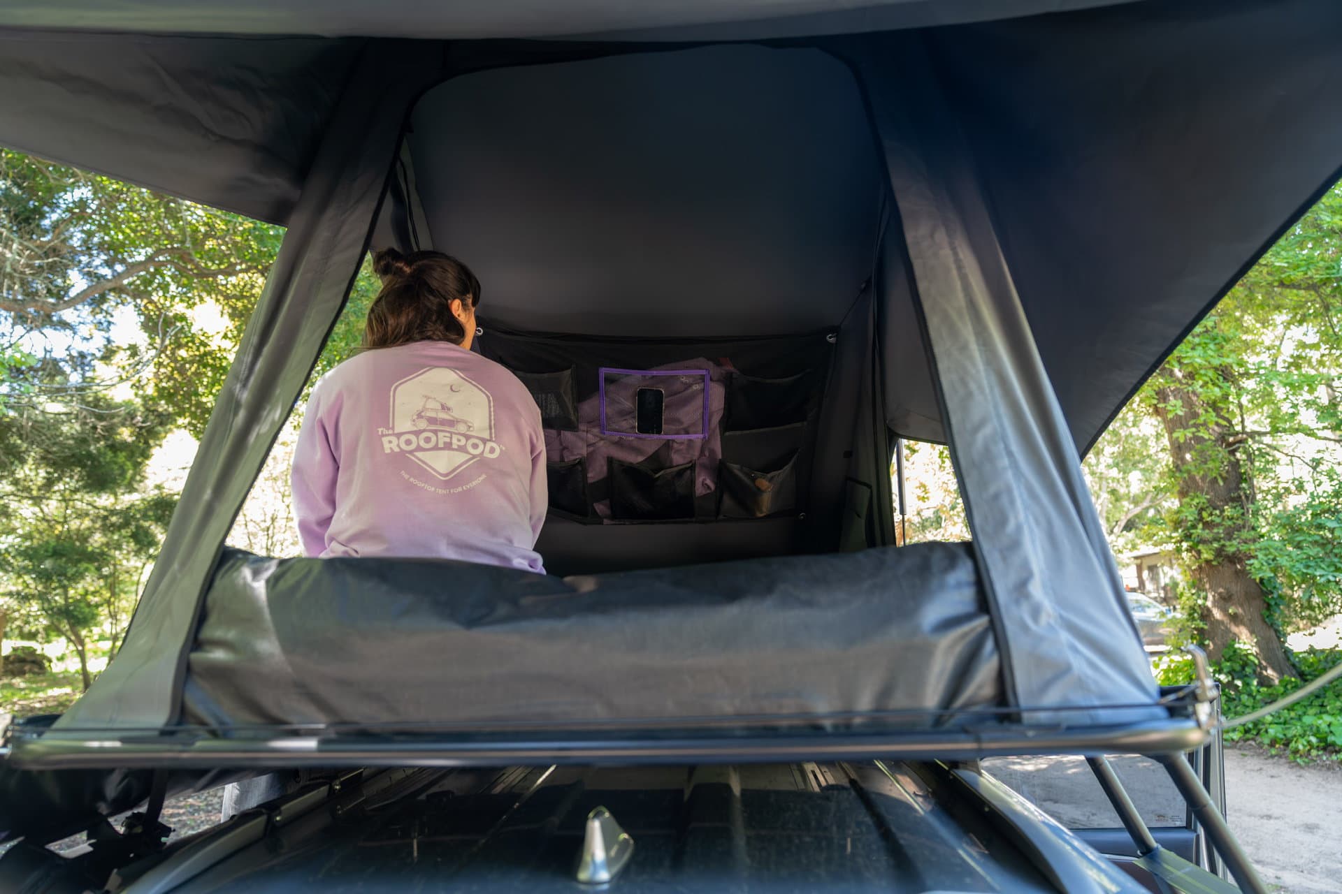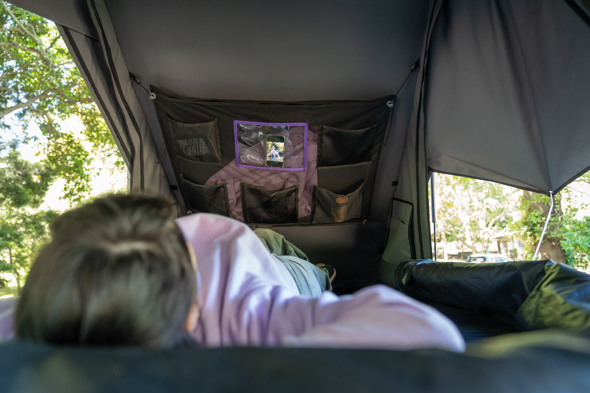 The RoofPod Inside Storage keeps your essentials tidy and within reach — from your phone and book to your morning clothes. It’s the ultimate comfort upgrade for life inside your tent. Fitted with one clear pouch for your tablet/phone when you need a little TLC and movie night on your trip.